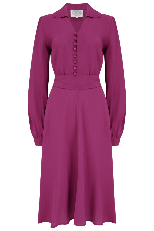 "Clarice" Long Sleeve Dress in Mulberry Classic 1940s True Vintage Inspired Style By The Seamstress of Bloomsbury