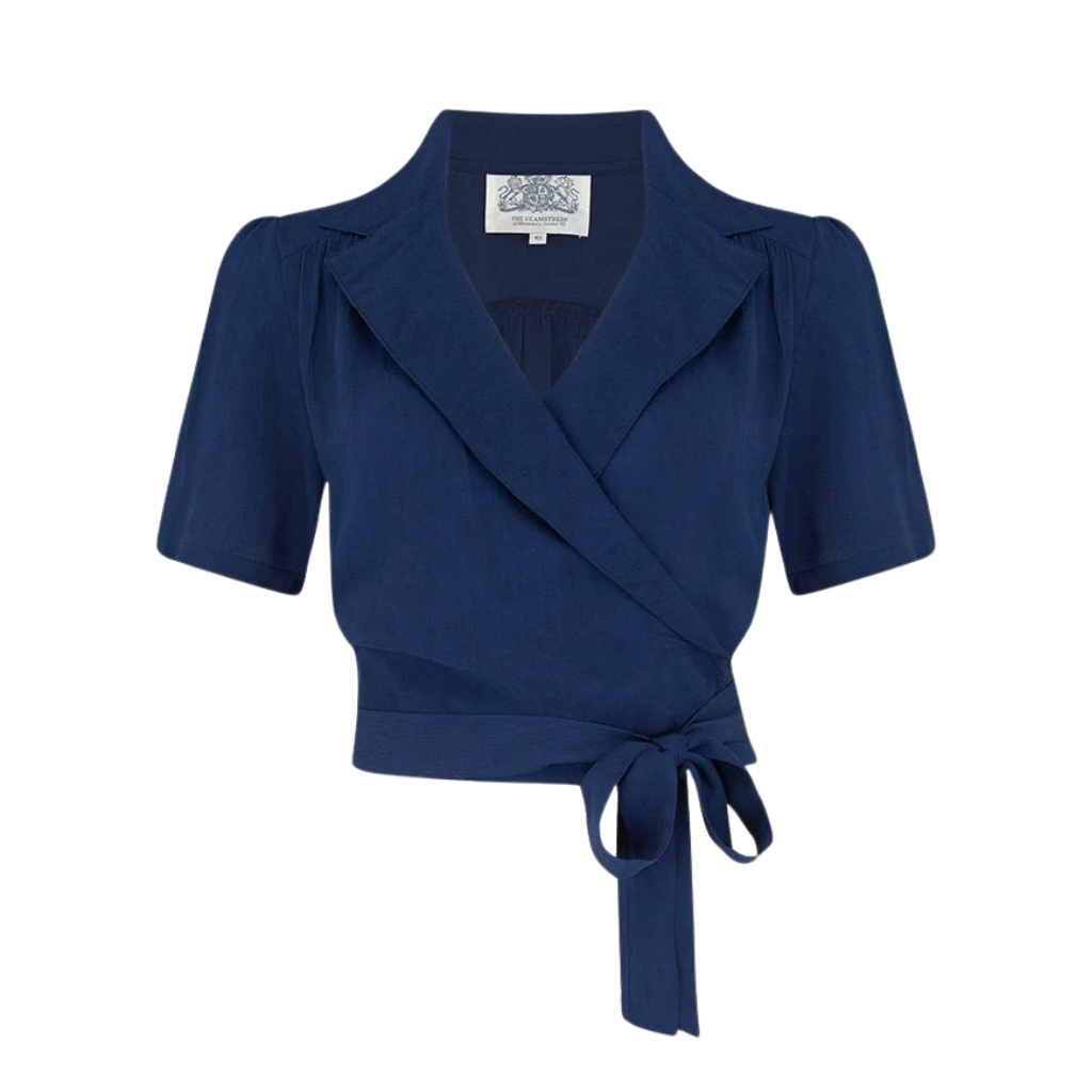 "Greta" Wrap Blouse in French Navy by The Seamstress Of Bloomsbury, Classic 1940s Vintage Inspired Style