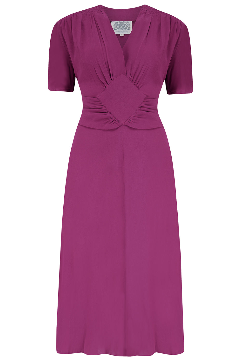 Ruby Dress in Mulberry, A Classic & Authentic 1940s Vintage Inspired Style By The Seamstress Of Bloomsbury