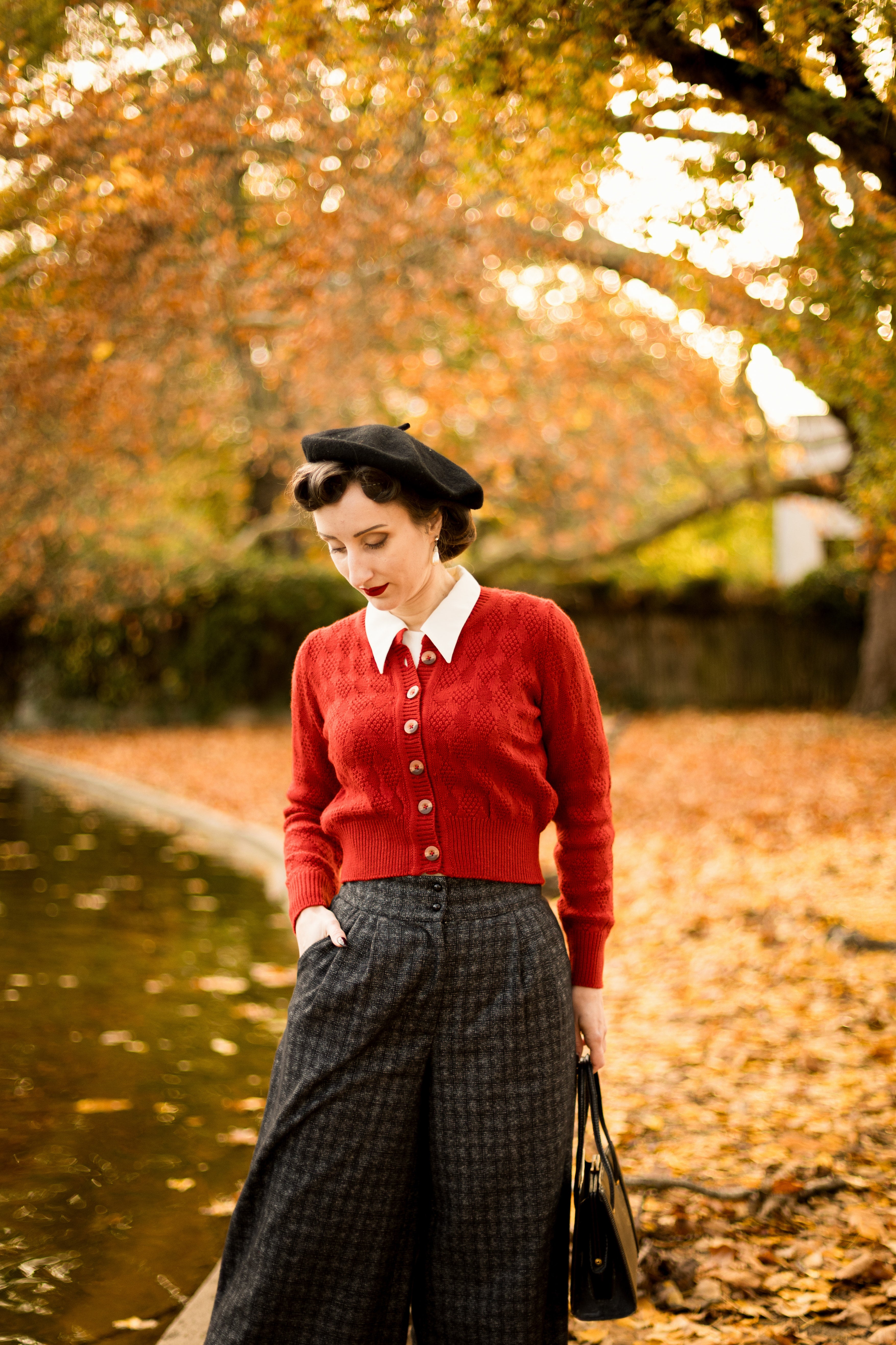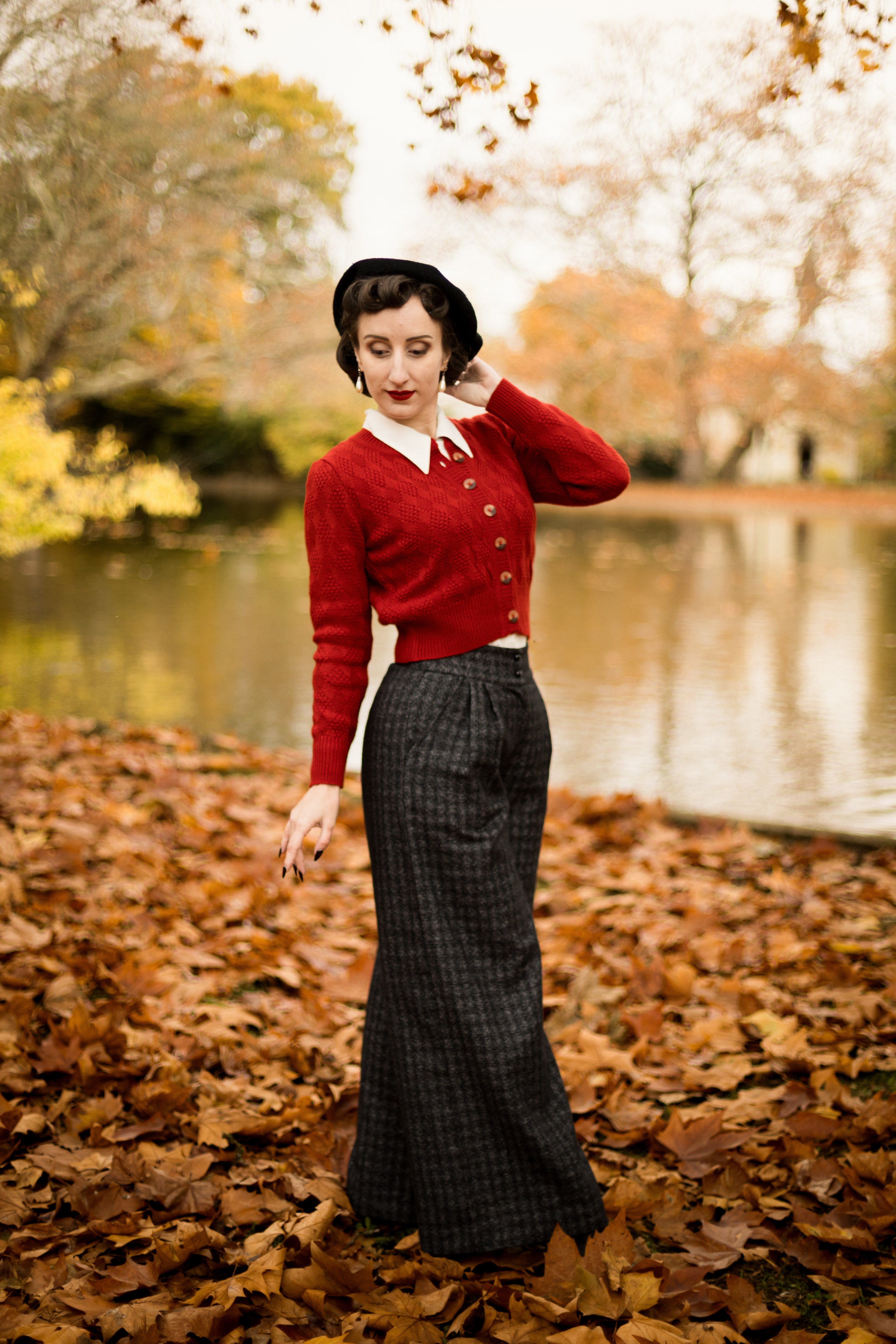 A classic in any wardrobe, Screaming that Hollywood Golden era from the late 1940s-1950s.. The high waist double front button & loose fit wide leg plazo style legs just oozes charm.
