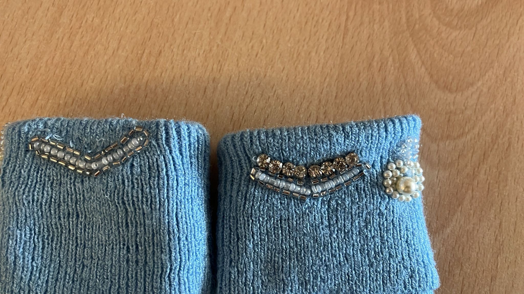 *Make Do & Mend* Sample Sale "Beaded Cardigan" in Powder Blue Size S/M .. PLEASE READ FULL DESCRIPTION ..