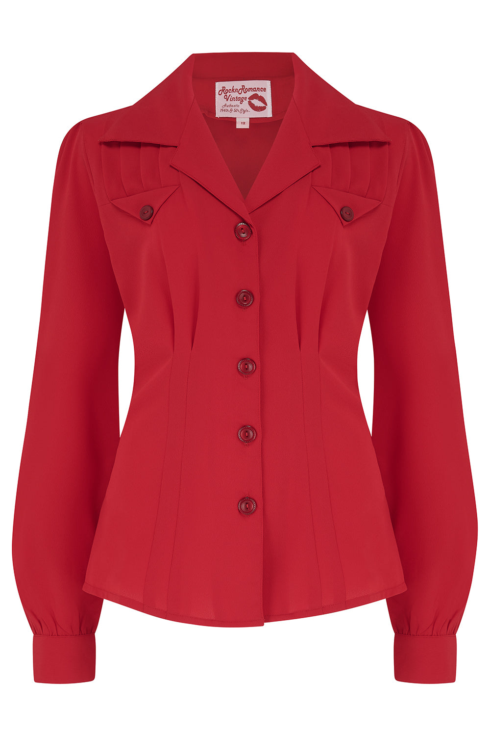 The "Polly" Long Sleeve Blouse in Red, Classic 1940s Vintage Style