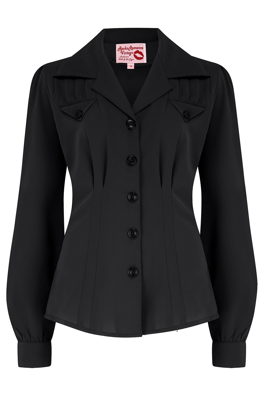 The "Polly" Long Sleeve Blouse in Secret Black, Classic 1940s Vintage Style