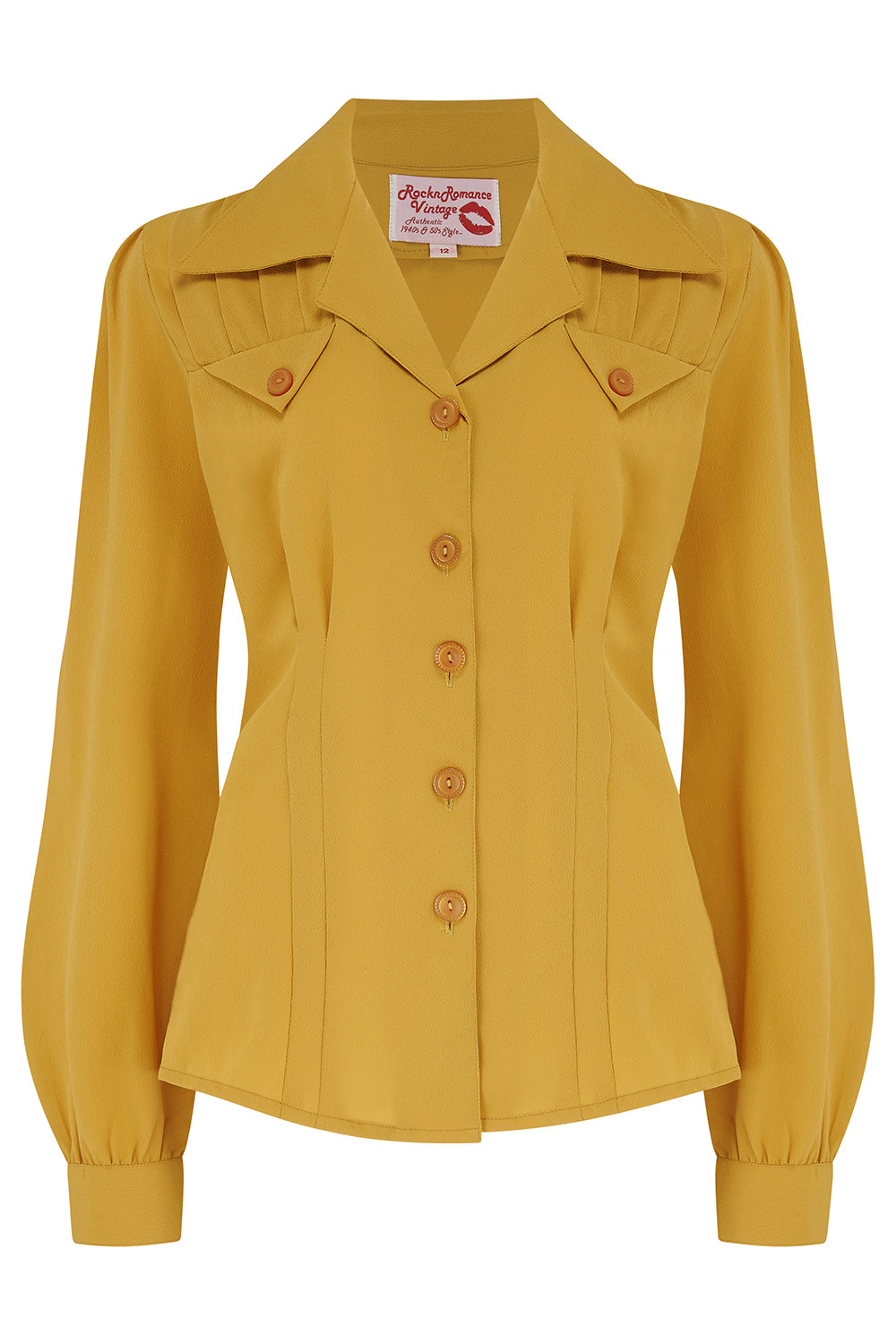 The "Polly" Long Sleeve Blouse in Secret Mustard, Classic 1940s Vintage Style