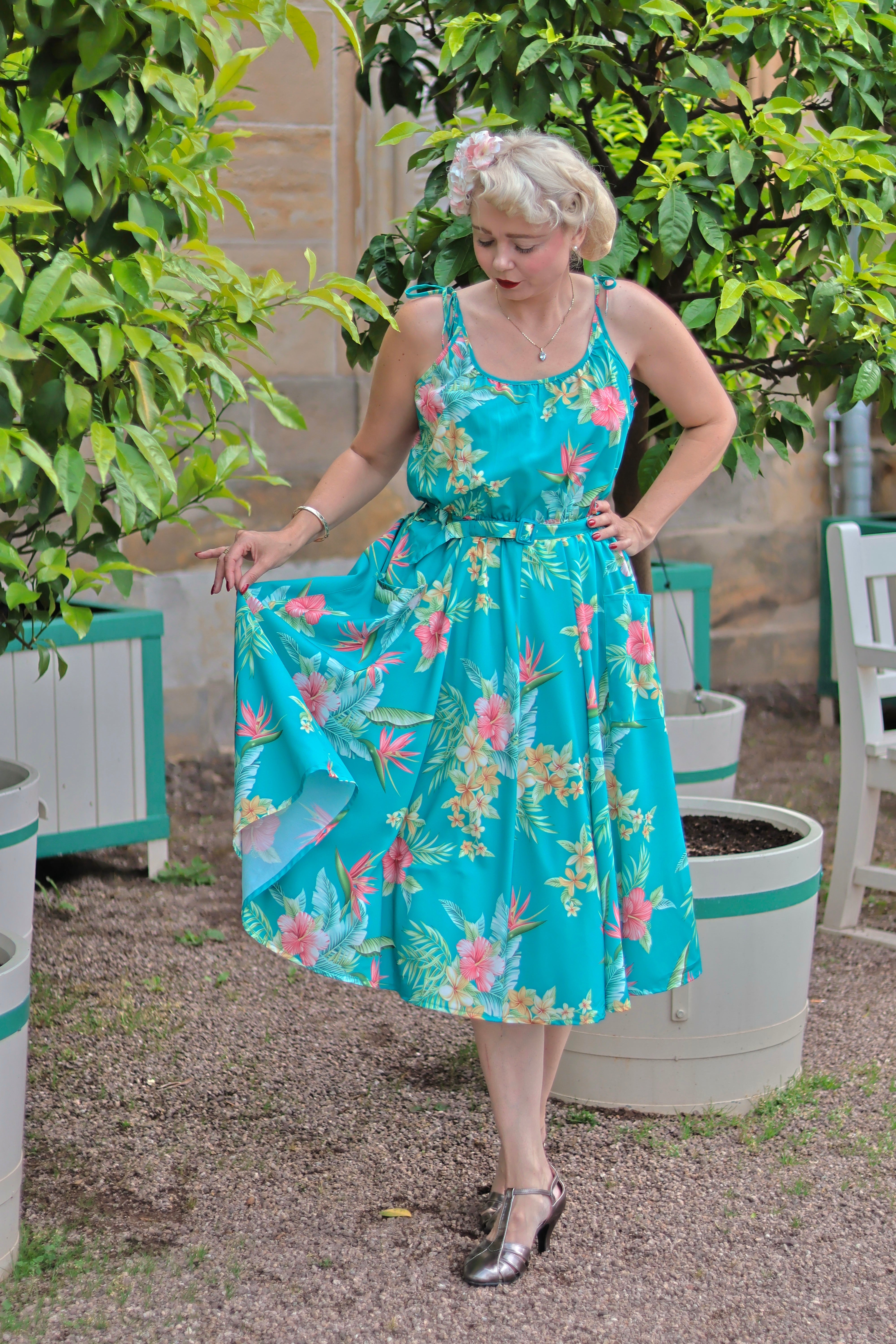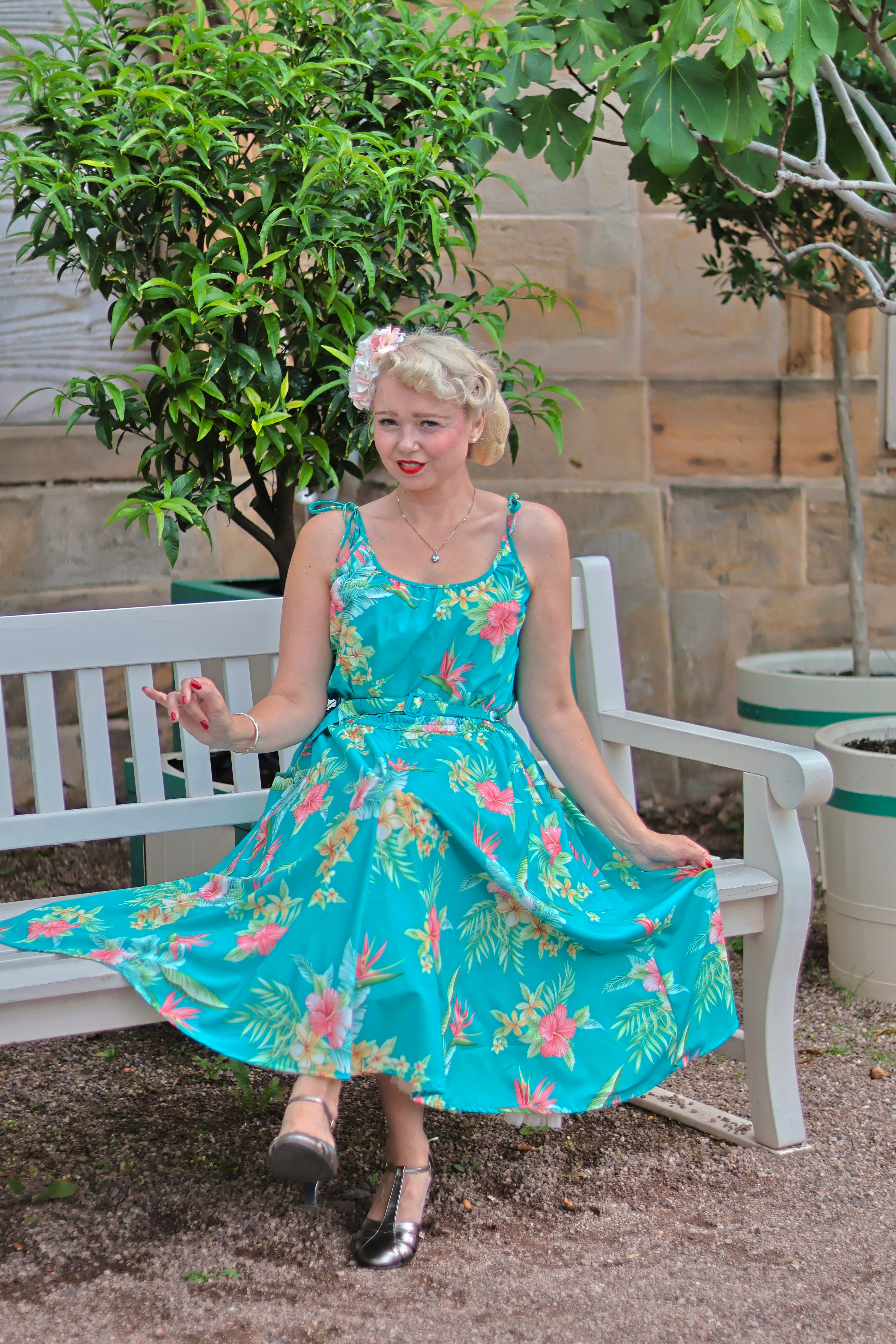 The "Suzy Sun Dress" in Teal Honolulu, Easy To Wear Vintage Style From The 50s