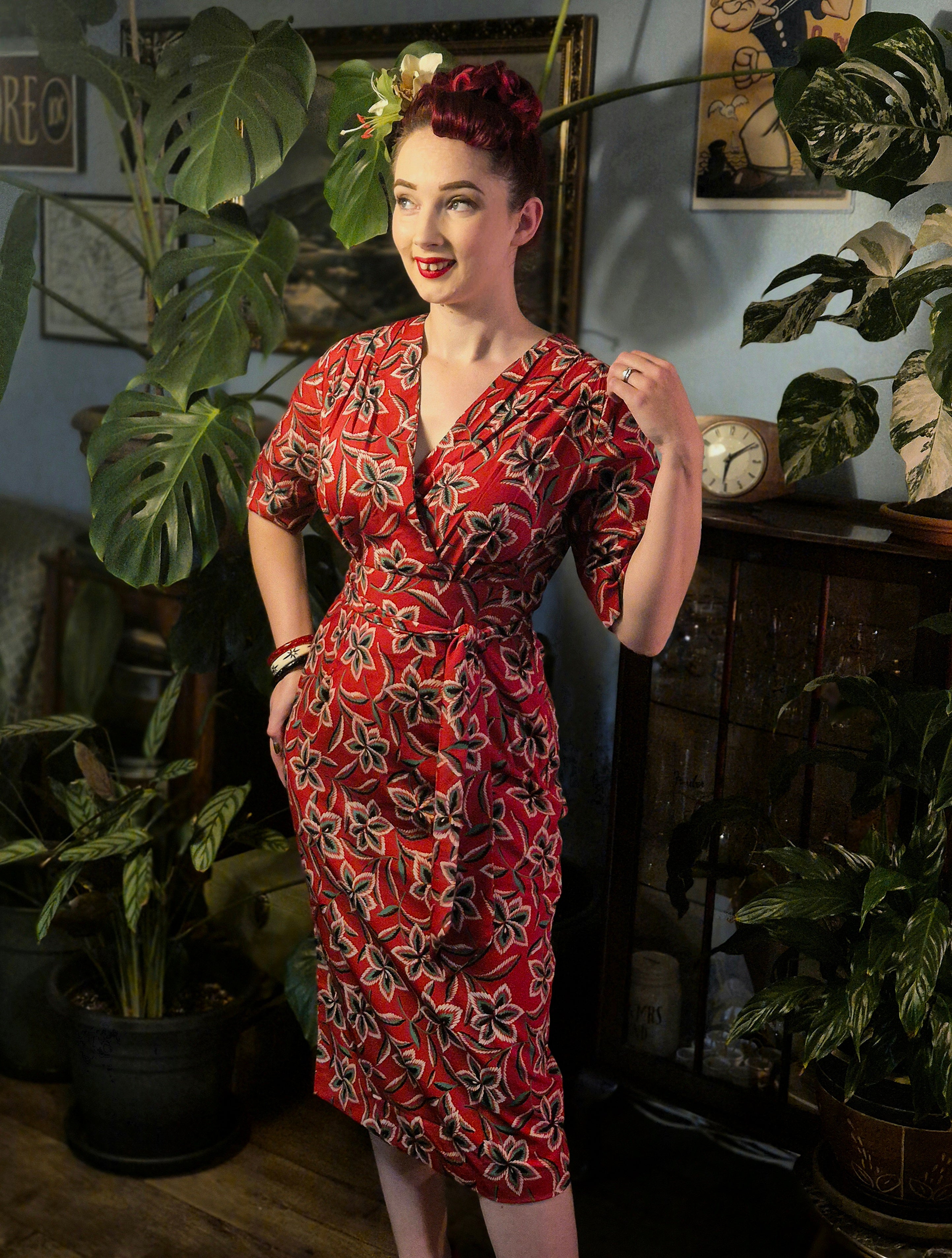 The “Evelyn" Wiggle Dress in Carnival Print, True Late 1940s Early 50s Vintage Style