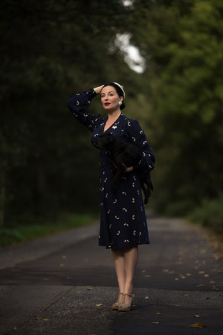 Cindy-Kleid in Marineblau von The Seamstress Of Bloomsbury, klassischer Vintage-inspirierter Stil der 1940er Jahre