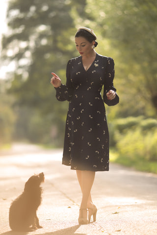 "Clarice" Long Sleeve Dress in Liquorice Black Classic 1940s True Vintage Inspired Style By The Seamstress of Bloomsbury