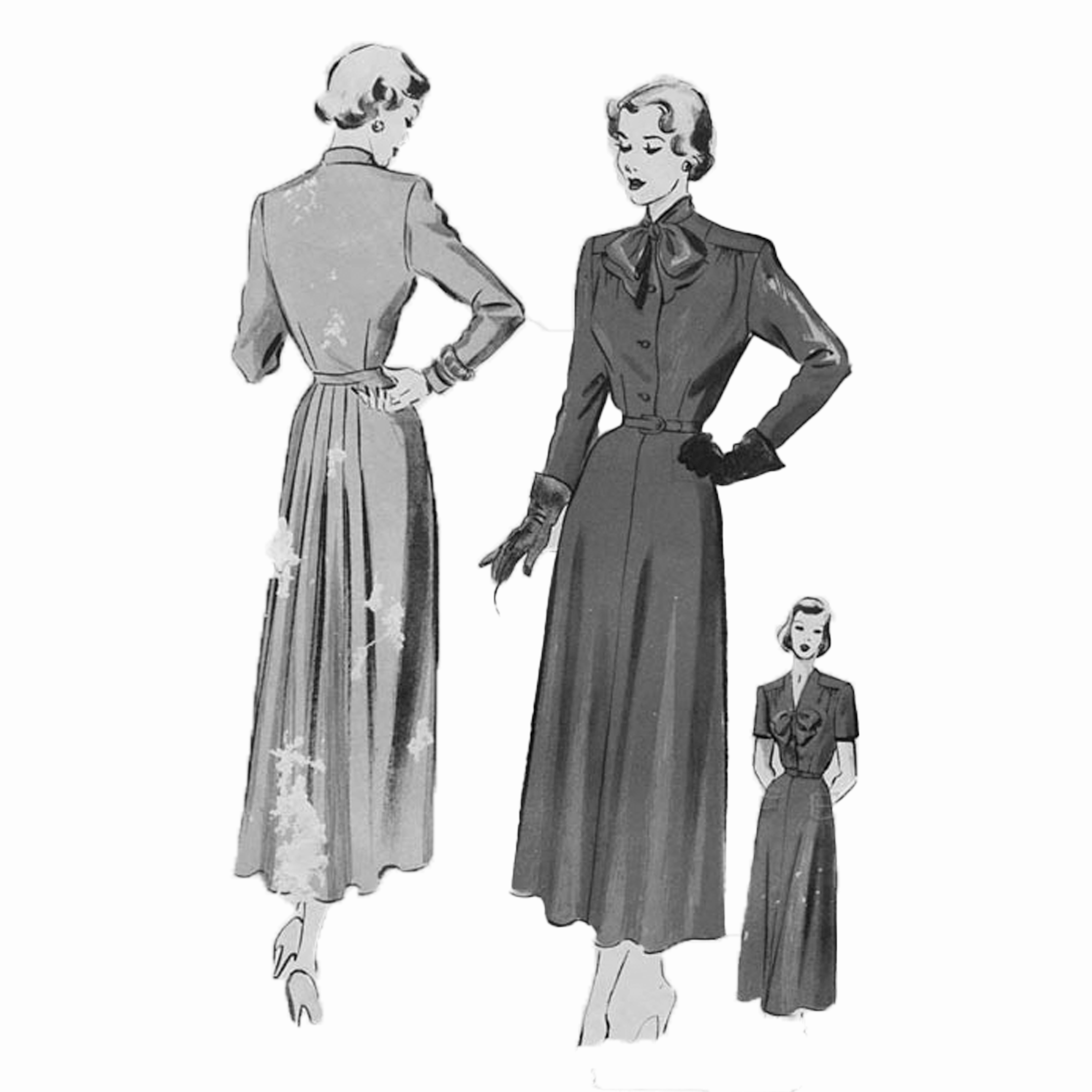 The well loved Eva Blouse now as a beautiful dress, this is a Classic 40’s shape with a tie bow collar: pretty smock stitching detail, little covered buttons to the front and long sleeves which are very full at the cuff. The beautiful 40’s Crepe de Chine fabric is soft to the touch and easy care too; with 100% natural fibre, no synthetic yarn or lycra in this garment.
