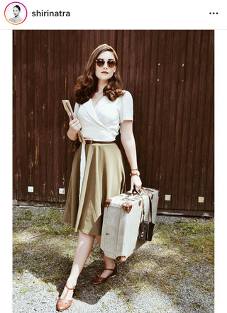 A "Seamstress of Bloomsbury" Original, Simply the best quality fabric, attention to detail and authentic Lilian Wells design. Lilian was the original "Seamstress of Bloomsbury".. She made beautiful items of clothing throughout the 1930s, 40s & Early 50s for London's aristocracy, battling the Blitz & circumstances that we cant even begin to imagine, but never compromising on her quality or delightful craftsmanship.. She was a very private but wonderful woman and an inspiration to us all. Through this wonderful range of 1940s clothing we aim to continue her legacy..