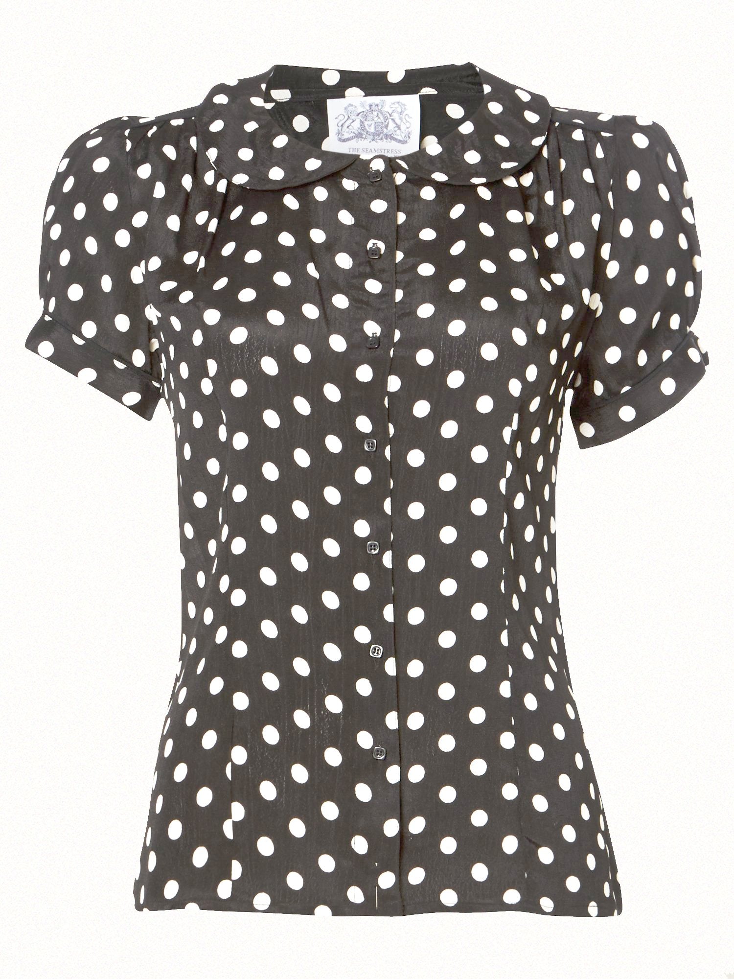 *Make Do And Mend* "Jive" Blouse in Black with Polka Dot Spot, size 8 .. PLEASE READ FULL DESCRIPTION ..