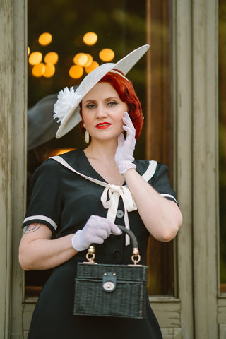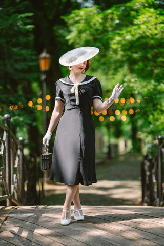 Patti Dress In 1940s Solid Black With Contrast Collar, Authentic true vintage style