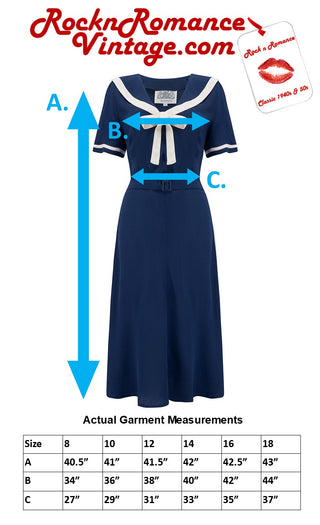 The Patti Dress is another one of the most stunning and original 40’s Dresses we have ever re-created.  We painstakingly copied the original sample in our archive, and the result is simply fabulous. Available in our very own authentic and natural 40’s Rayon Crepe De Chine fabric in Navy/Ivory or Wine/Ivory. This style is so flattering, it has a shawl style collar edged in Ivory with a beautiful tie bow at the front, and matching contrast bands on the sleeves. Button front, self coloured belt and side zip for easy fitting … we simply love this dress. A "Seamstress of Bloomsbury" Original, Simply the best quality fabric, attention to detail and authentic Lillian Wells designs.