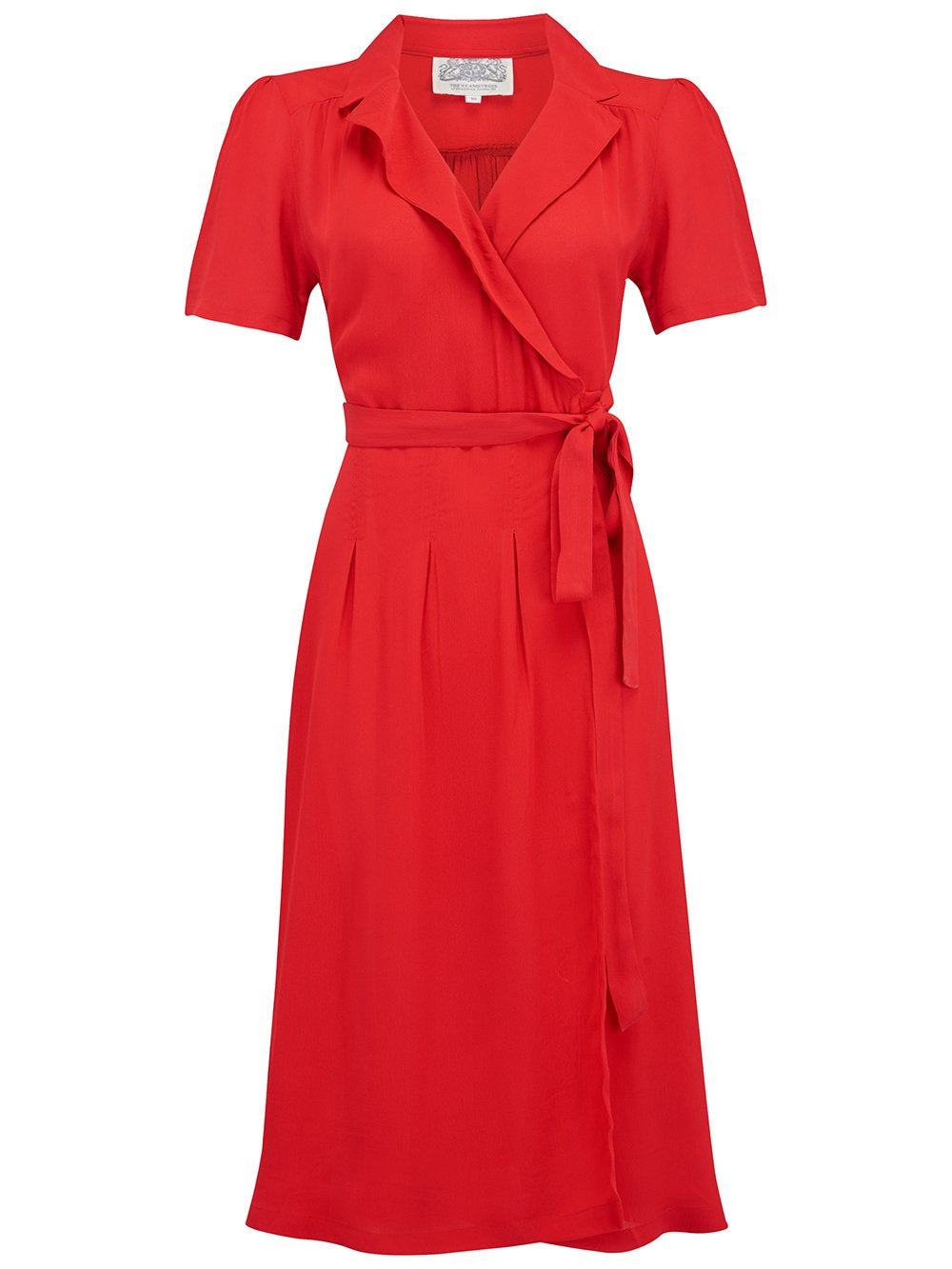 "Peggy" Wrap Dress in Solid Red, Classic 1940s Vintage Inspired Style