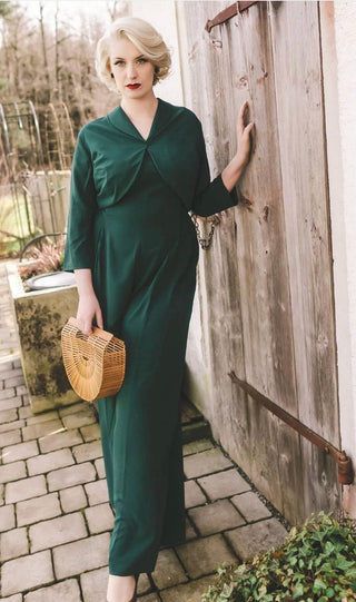 The "Lana" Palazzo Jump Suit & Bolero 2pc Set in Green, Easy To Wear Vintage Style