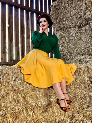The "Beverly" Button Front Full Circle Skirt with Pockets in Solid Mustard, True 1950s Vintage Style