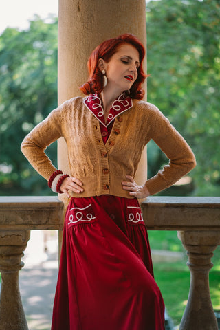 The "Sandra" Textured Diamond Knit Cardigan in Biscuit, 1940s & 50s Vintage Style