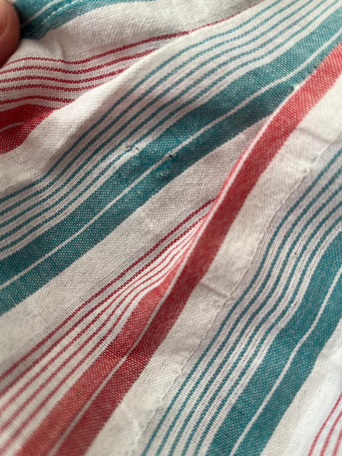 *Make Do & Mend* Sample Sale "Darla" Short Sleeve Blouse in Green and Red Stripe Size 14 .. PLEASE READ FULL DESCRIPTION ..