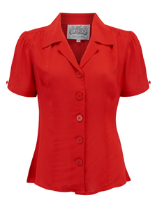 "Grace" Blouse in Lipstick Red, Authentic & Classic 1940s Vintage Style