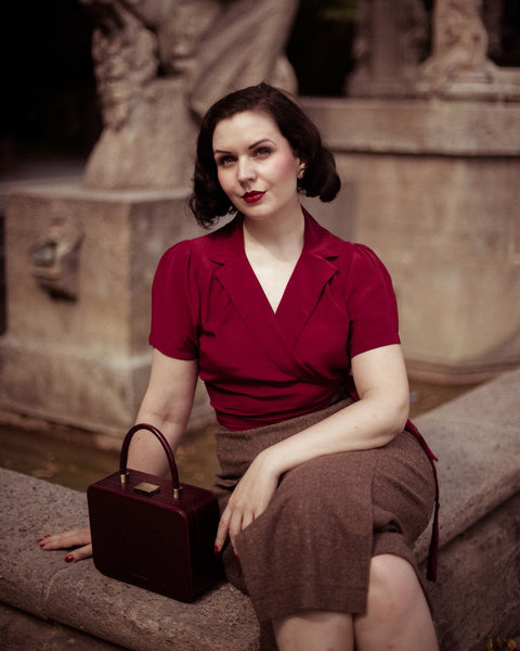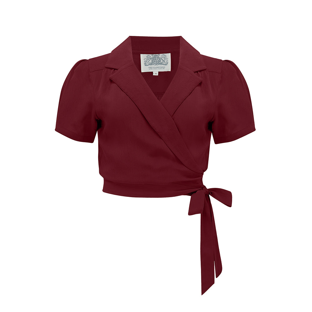"Greta" Wrap Blouse in Wine , Classic Authentic Style 1940's Blouse
