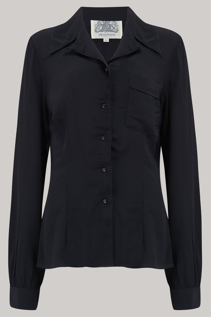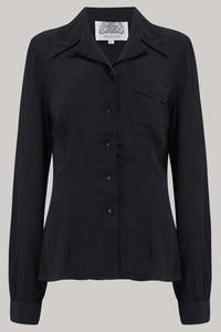 Jacqui Blouse in Black , Classic 1940s Vintage Inspired Style Day Blouse