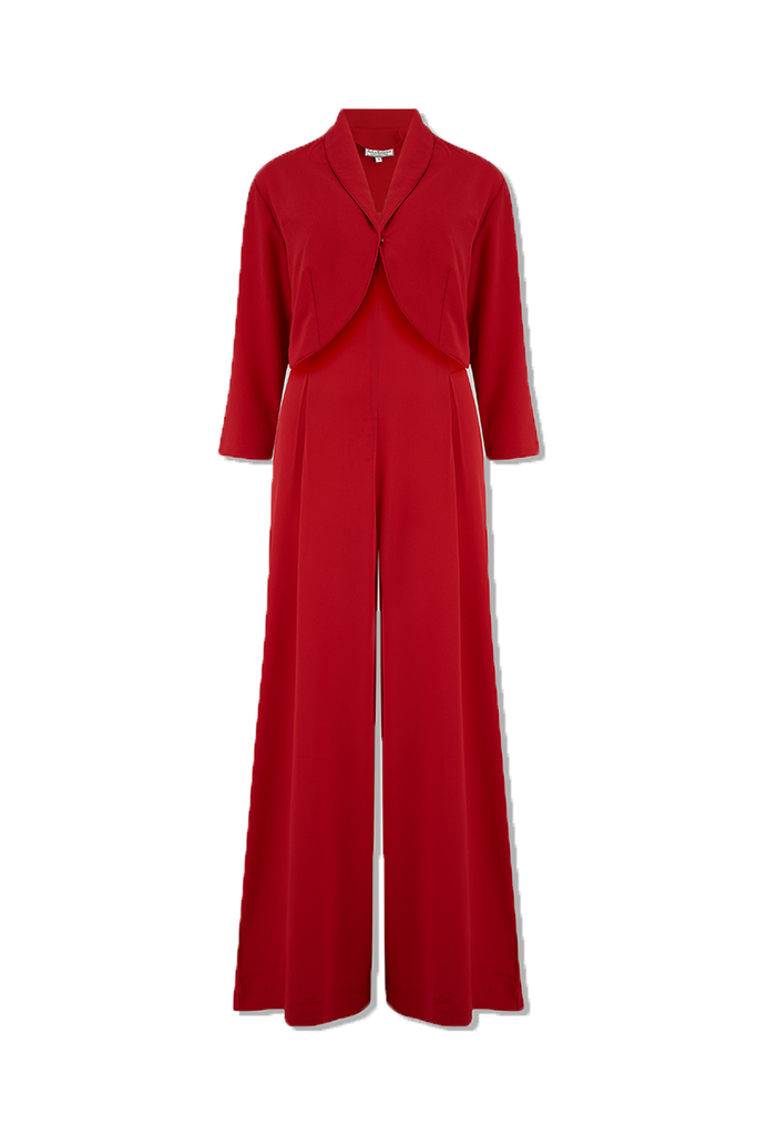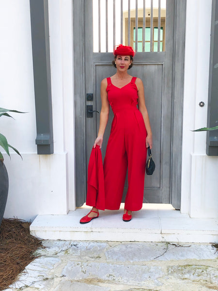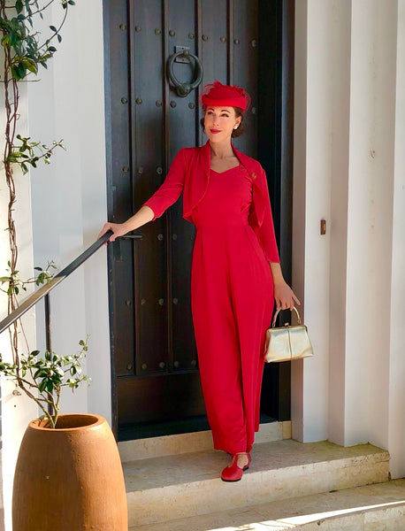 The "Lana" Palazzo Jump Suit & Bolero 2pc Set in Red, Easy To Wear Vintage Style