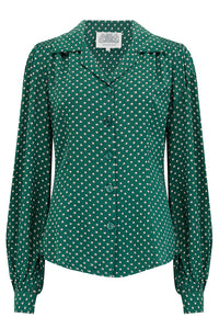 Poppy Long Sleeve Blouse in Green Ditzy Dot , Authentic & Classic 1940s Vintage Style