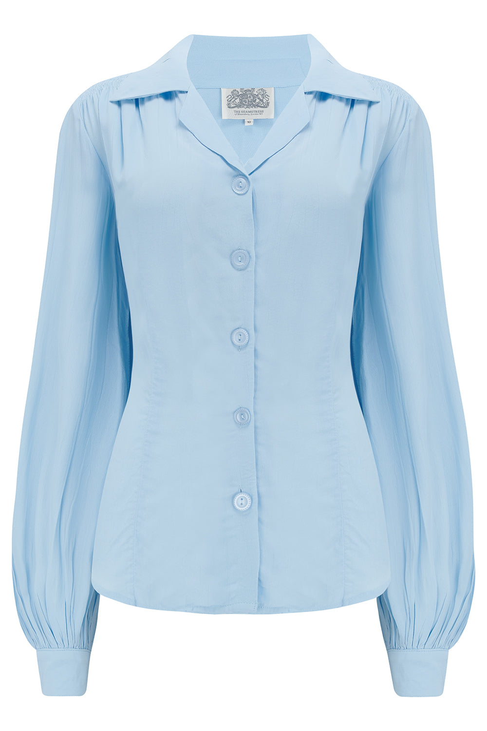 Poppy Long Sleeve Blouse in Powder Blue , Authentic & Classic 1940s Vintage Style