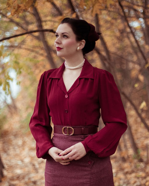 Poppy Long Sleeve Blouse in Wine, Authentic & Classic 1940s True Vintage Style