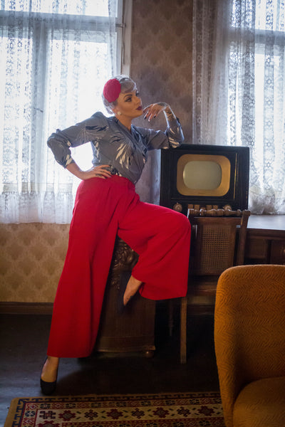 The "Sophia" Palazzo Wide Leg Trousers in Red, Easy To Wear Vintage Inspired Style