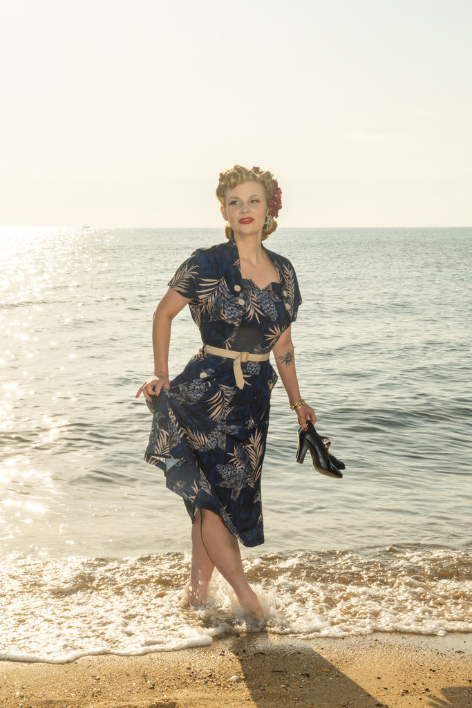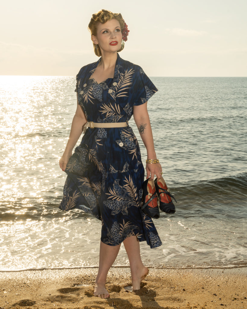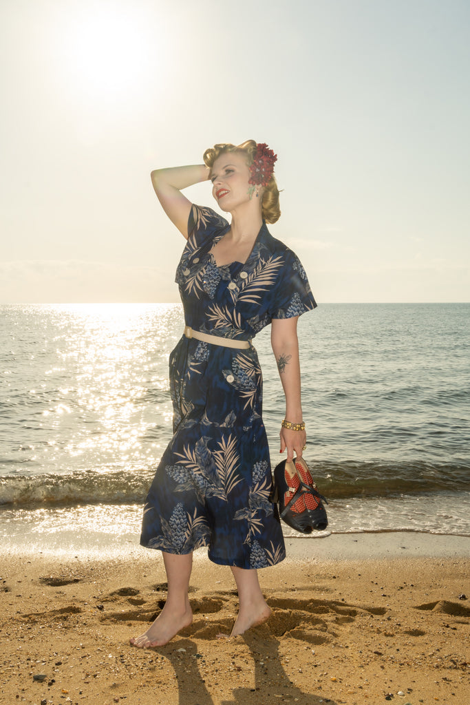 Flattering, fun and feel good are only a few words which we would use to describe this adorable outfit. Just perfect for a fun filled days at a vintage fair or a night out swing jiving to your favourite Rock'n'Roll. Whatever you do in it, you will be sure to look and feel fun and stylish whatever you choose to do.