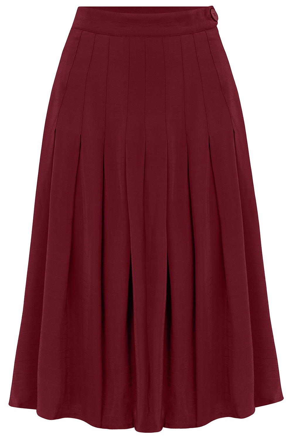 The "Lucille" Pleated Skirt in Windsor Wine, Classic & Authentic 1940s Vintage Inspired Style
