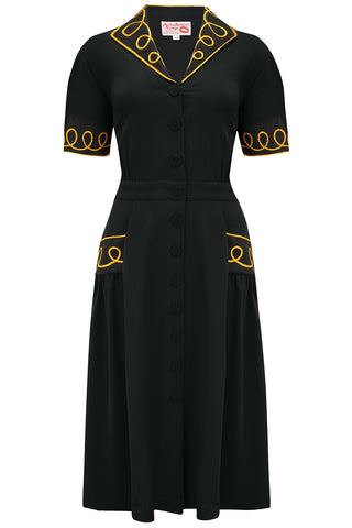 "Clarice" Long Sleeve Dress in Liquorice Black Classic 1940s True Vintage Inspired Style By The Seamstress of Bloomsbury