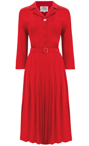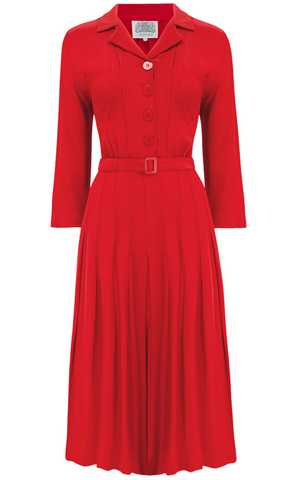 "Clarice" Long Sleeve Dress in Lipstick Red Classic 1940s True Vintage Inspired Style By The Seamstress of Bloomsbury