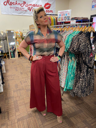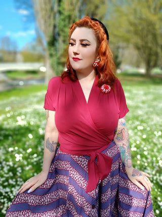 The "Darla" Short Sleeve Wrap Blouse in Wine, True Vintage Style