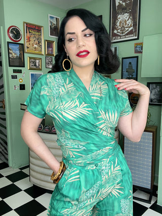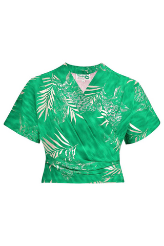 **Sample Sale** The "Darla" Short Sleeve Wrap Blouse in Emerald Palm Print **End Of Line Item, When Its Gone Its Gone!!**
