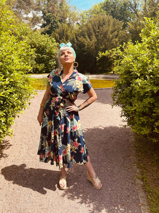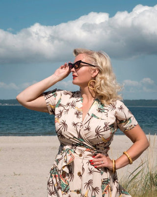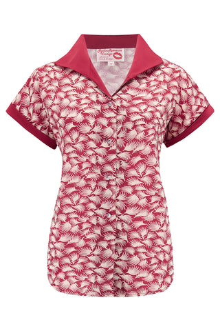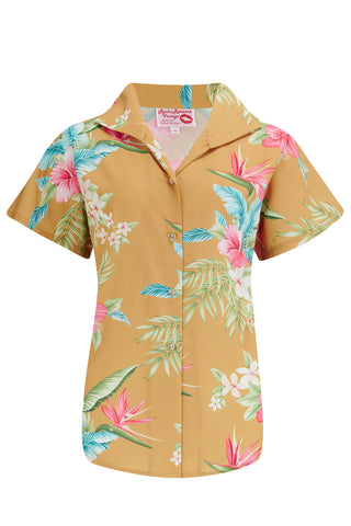 The "Darla" Short Sleeve Wrap Blouse in Polynesia Print, True 50s Vintage Style