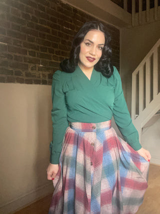 The "Darla" Long Sleeve Wrap Blouse in Green, True Vintage Style