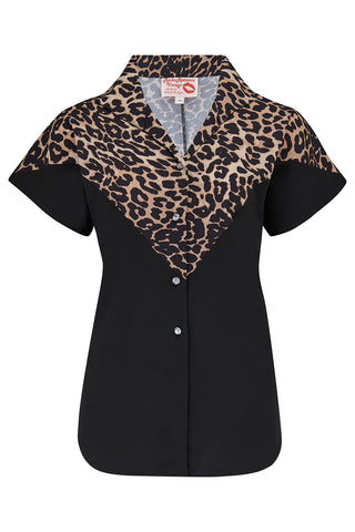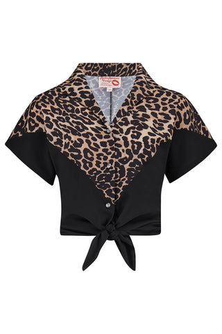 The "Maisy" Tuck in or Tie Up Blouse in Black & Leopard, Classic Vintage Western Style