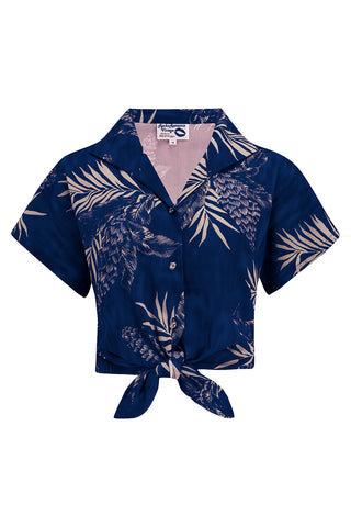 Tuck in or Tie Up "Maria" Blouse in Sapphire Palm Print, Authentic 1950s Style