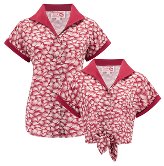 Tuck in or Tie Up "Maria" Blouse in Pink Honolulu Print, Authentic 1950s