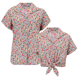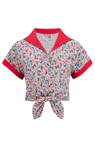 Tuck in or Tie Up "Maria" Blouse in Tahiti Print, Authentic 1940s-50s