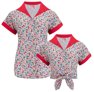Tuck in or Tie Up "Maria" Blouse in Pagoda Print, Authentic 1950s