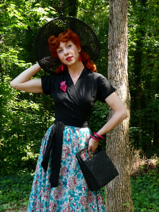 The "Darla" Short Sleeve Wrap Blouse in Black, True Vintage Style