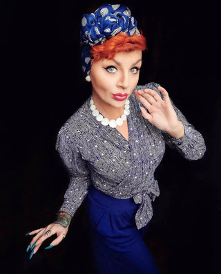 The "Darla" Long Sleeve Wrap Blouse in Navy, True Vintage Style