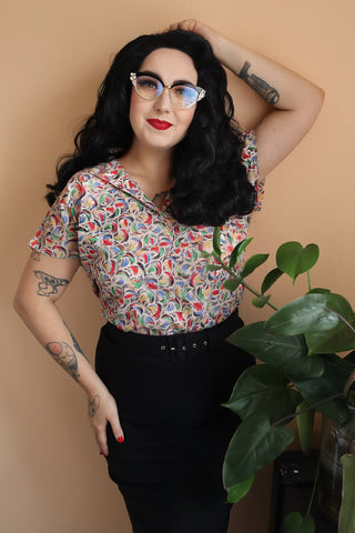 The "Darla" Short Sleeve Wrap Blouse in Tutti Frutti , True Vintage Style