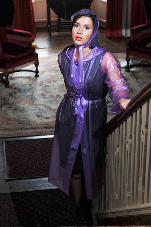 Authentic 1940s & 50s Style "Vintage Rain Mac & Headscarf/Bonnet" in Lilac Semi Trasparent by Elements Rainwear