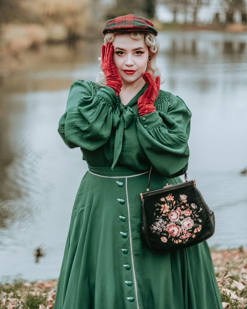 A "Seamstress of Bloomsbury" Original, Simply the best quality fabric, attention to detail and authentic Lilian Wells design. Lilian was the original "Seamstress of Bloomsbury".. She made beautiful items of clothing throughout the 1930s, 40s & Early 50s for London's aristocracy, battling the Blitz & circumstances that we cant even begin to imagine, but never compromising on her quality or delightful craftsmanship.. She was a very private but wonderful woman and an inspiration to us all. Through this wonderful range of 1940s clothing we aim to continue her legacy..