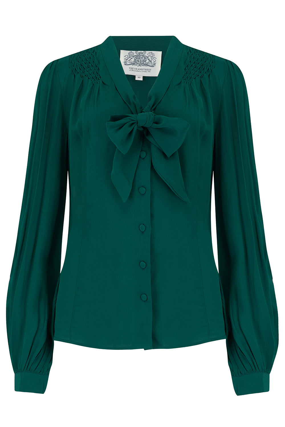 Eva Long Sleeve Blouse in Solid Green, Authentic & Classic 1940s Vintage Style