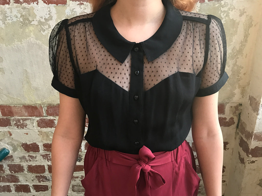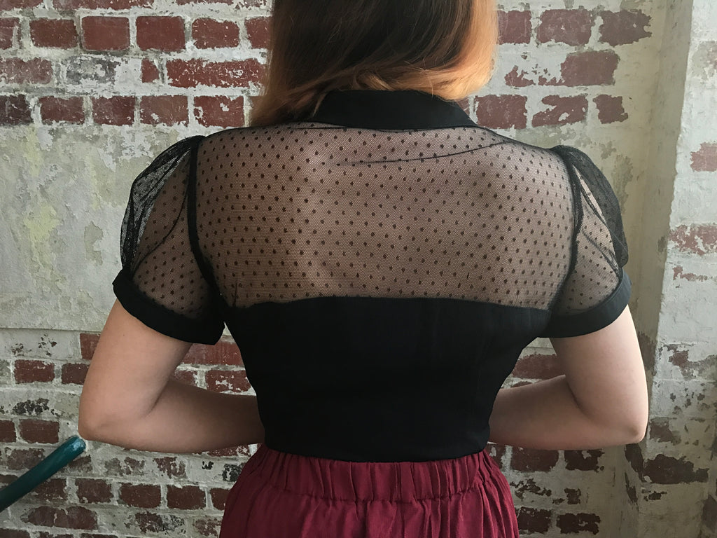 "Florance" Evening Blouse in Black with Net, Authentic 1940s Vintage Style